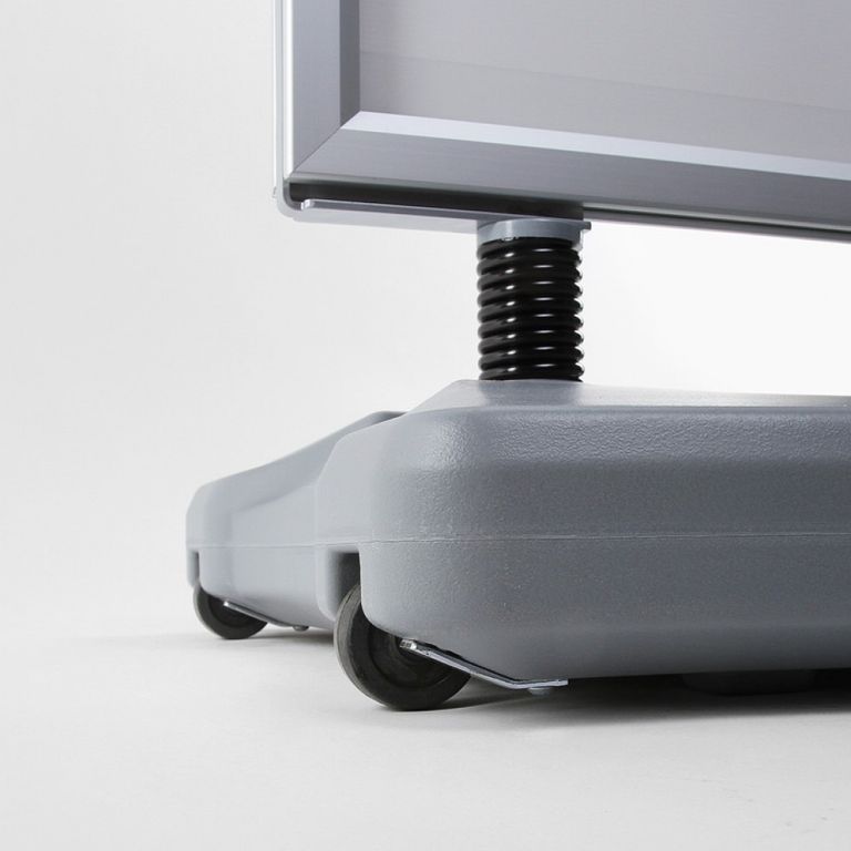 Speziell für Ihre Werbung in windigen Bereichen ist der Kundenstopper WINDTALKER® von Werbeshop-Bodensee in Konstanz, Radolfzell, Singen, Hegau, Kreuzlingen, Schaffhausen & Bodensee die optimale Lösung. Sein mit Wasser oder Sand befüllbarer Standfuß bietet in Verbindung mit den Spezialfedern aus Stahl eine hohe Standfestigkeit. Für den einfachen Transport sind im Standfuß Rollen integriert. So können Sie den Kundenstopper trotz des Standgewichtes einfach bewegen. Der Aluminium-Schnellwechselrahmen kann doppelseitig mit Plakaten bestückt werden und garantiert Ihnen auch bei hohen Windstärken eine auffällige Werbemöglichkeit.